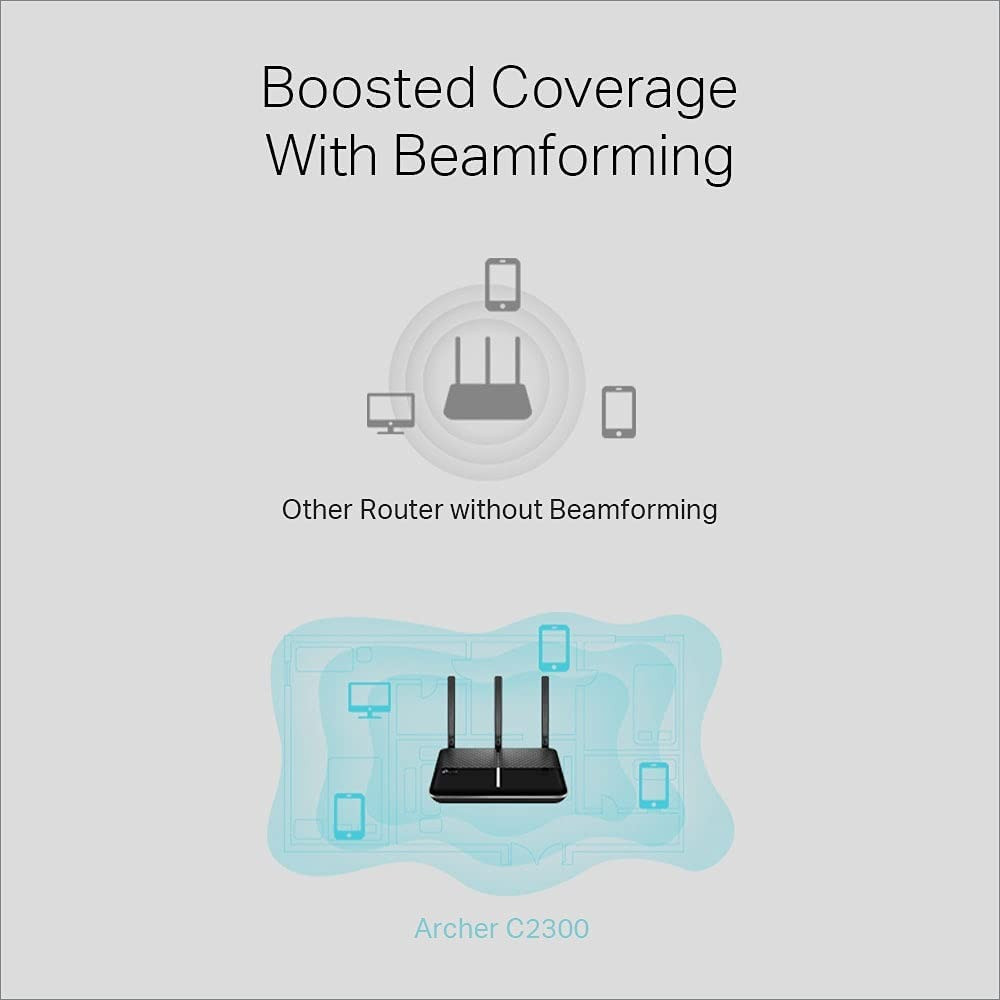 مع تقنية NitroQAM ، يعزز Archer C2300 سرعة WiFi حتى 1625 ميجابت في الثانية على 5 جيجاهرتز و 600 ميجابت في الثانية على 2.4 جيجاهرتز. يمكنه التعامل بشكل مثالي مع أنشطتك المفضلة مثل الألعاب عبر الإنترنت أو مشاهدة أفلام 4K أو مشاركة الملفات الكبيرة.