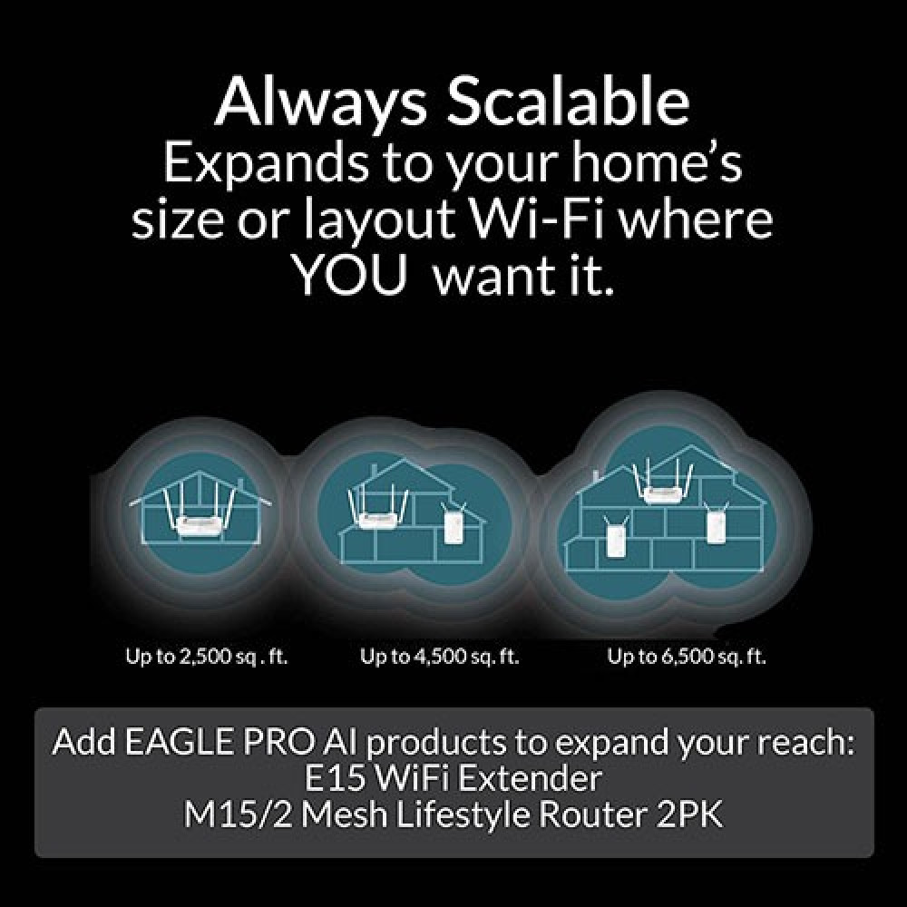 بفضل ميزات الذكاء الصناعي المتقدمة للمراقبة المستمرة للشبكة ، يحافظ R15 على أداء Wi-Fi في أفضل حالاته. لم تكن إدارة شبكتك أسهل من أي وقت مضى مع مساعد الذكاء ىلصناعي على تطبيق الهاتف المحمول المجاني.