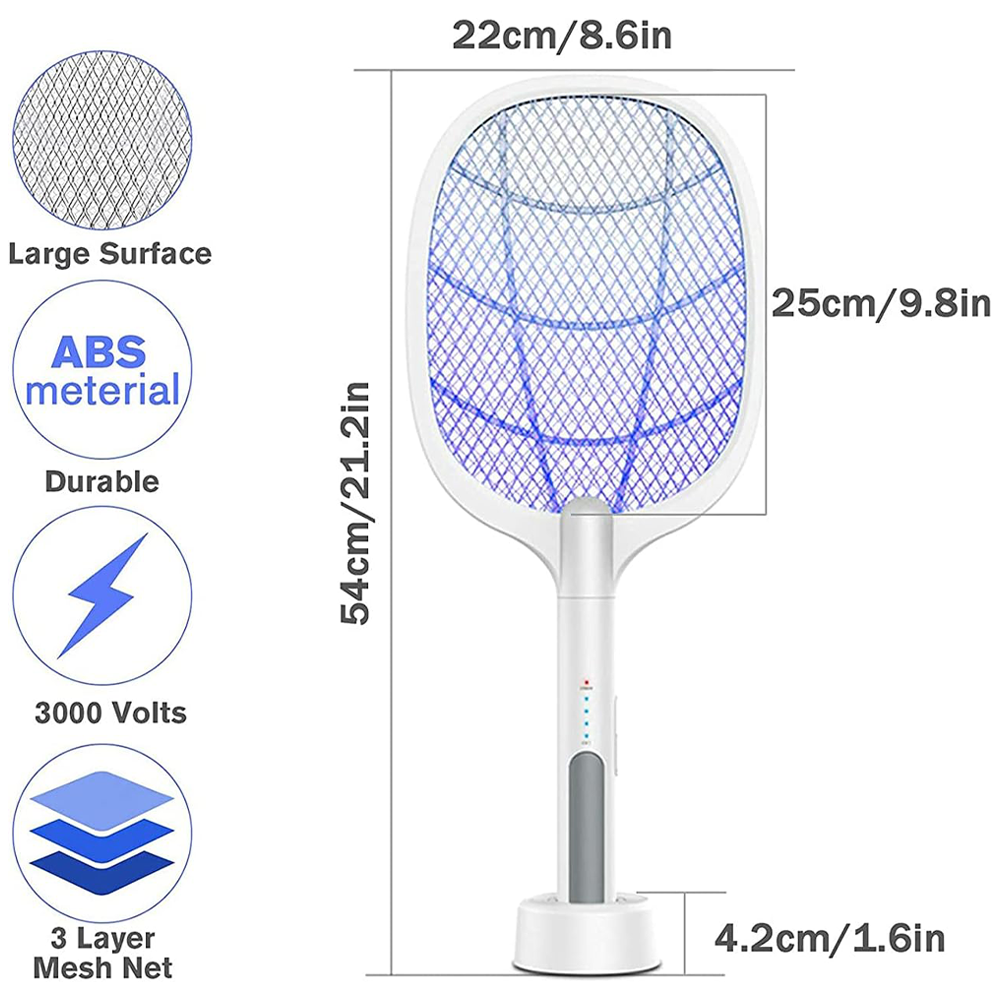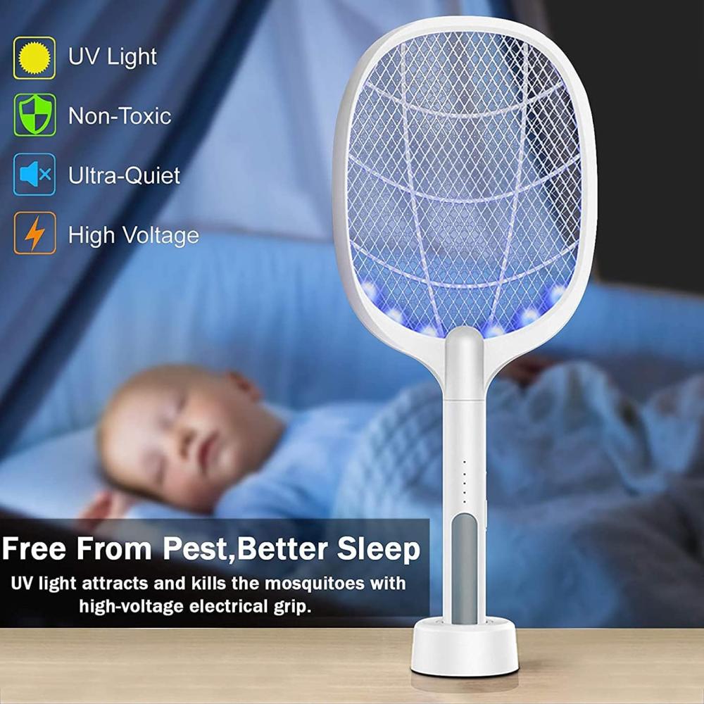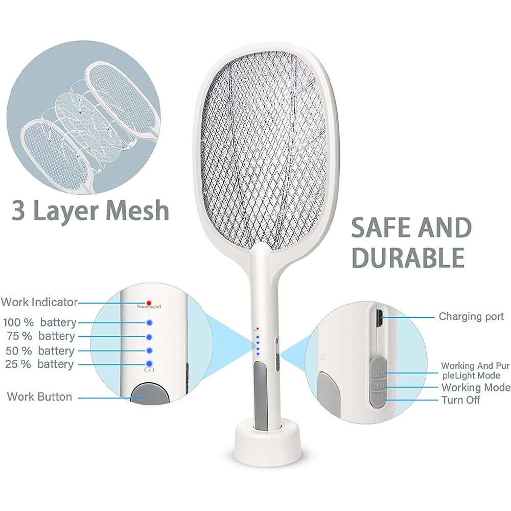 تخلص من الحشرات الطائرة المزعجة بسهولة باستخدام مضرب كهربائي للبعوض والذباب المزوّد بقاعدة عملية. يوفر تصميمه الآمن والفعال وسيلة مريحة للتخلص من البعوض والذباب بضغطة زر.