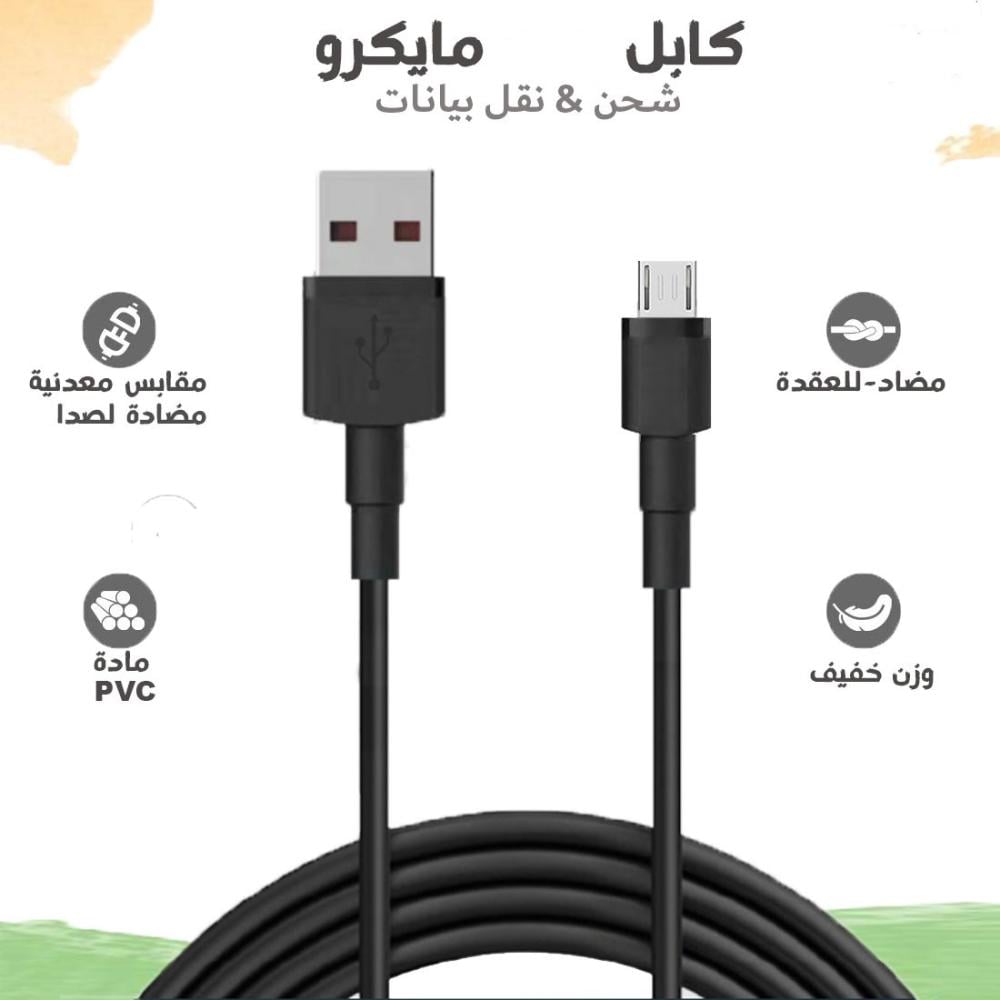كيبل مايكرو يو اس بي شاحن عادي اسود 2 متر :