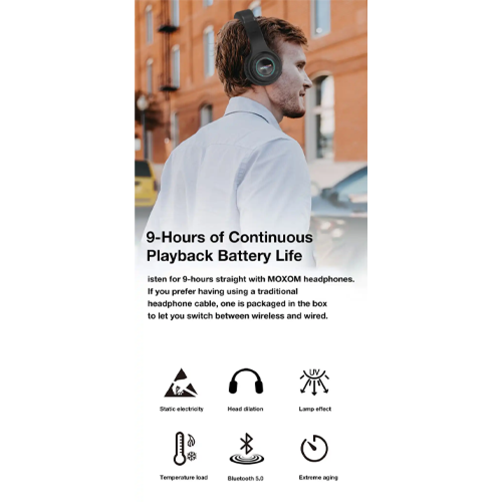 استمتع بـ 9 ساعات من الاستماع لصوت الدقات والباس ونقاء وجمال الصوت وعذوبته مع الجديد من موكسوم.– تدعم التشغيل السلكي AUX او اللاسلكي BLUETOOTH دعم اصدار بلوتوث: الجيل الخامس V5.0.– اضاءة تفاعلية بسبعة...